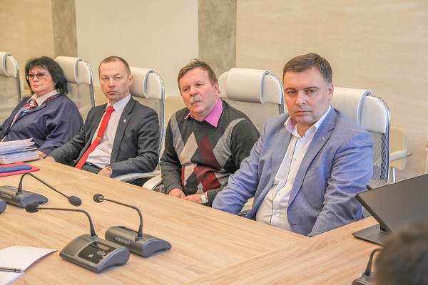 По окончании ознакомительной экскурсии в зале заседаний диссертационных советов ОмГТУ состоялась встреча делегатов с представителями опорного вуза региона: первым проректором Дмитрием Маевским, проректором по учебной работе Олегом Кропотиным, проректором по научной работе Бекином Женатовым, начальником научно-исследовательской части Василием Фефеловым, деканом факультета транспорта нефти и газа Игорем Квасовым, деканом факультета информационных технологий и компьютерных систем Владимиром Макаровым, деканом энергетического института Андреем Татевосяном, деканом нефтехимического института Владимиром Юшой и директором библиотеки Ларисой Литвиной.