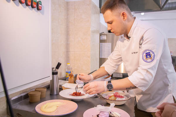 Артем Ширяев, выпускник ОмГТУ: «Развитие общественного питания в школах – очень важный вопрос. Конечно, те блюда, которые я представляю, достаточно сложные и имеют ресторанную подачу. Но я старался адаптировать их под школьное питание не только подачей, а именно технологией приготовления. Это, пожалуй, самый важный в данном случае фактор. Это касается и сырников, и лавандового сорбета, и утки конфи со спаржей, вместо которой можно подавать и обыкновенную курицу. Первоочередная наша задача – отгородить детей от сетей быстрого питания. Чтобы это сделать, необходимо революционно подойти к этому вопросу. Я думаю, что если дети каждый день будут видеть такую подачу еды, они сами начнут меняться и стремится к лучшему, в том числе и в учебе» |