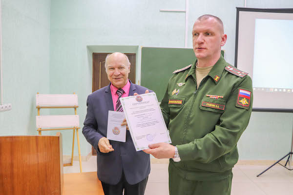 После своего выступления Анатолий Соловьев вручил полковнику Константину Грымзину сертификаты участников предыдущей конференции, прошедшей 2 марта, от лица председателя Сибирского отделения Академии военных наук генерала-майора Андрея Федорова.