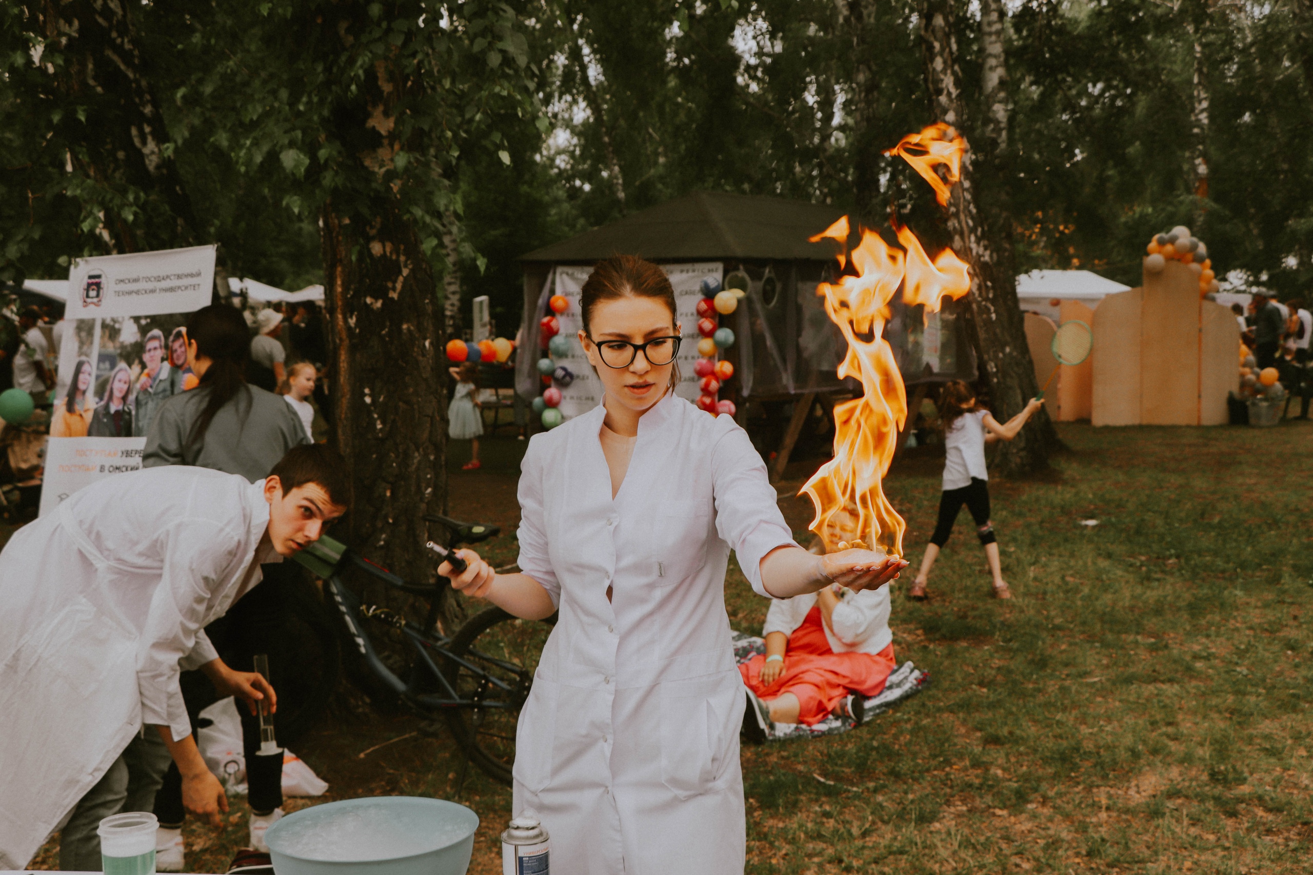 Завершающим интерактивом стали завораживающие опыты с огнем и жидким азотом от нефтехимического института, которые не оставили равнодушными никого из гостей фестиваля.
