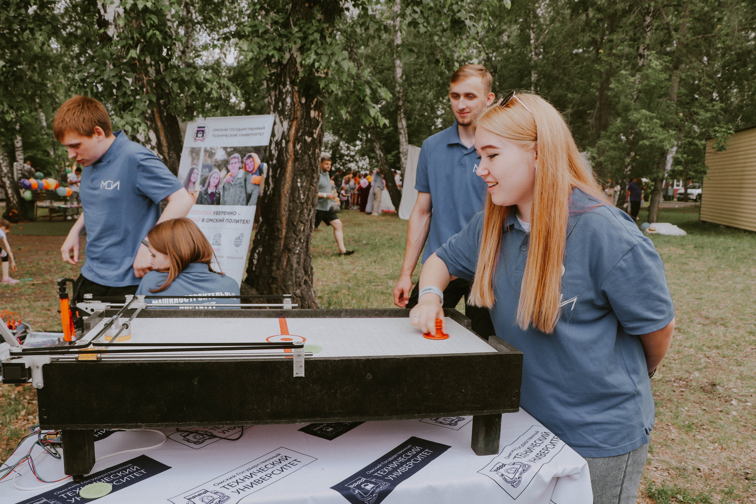 Факультет информационных технологий и компьютерных систем предложил посетителям парка сыграть в аэрохоккей, где противником выступила разработанная студентами система. Также была представлена имитация работы оборудования, применяемая на заводах. Участники с помощью робота и других подвижных устройств на площадке должны были переместить предмет в заданное положение.