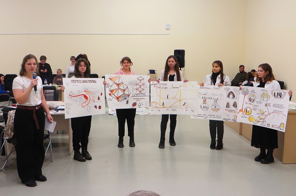 Председатель правления ОРООО «СДР» Наталья Ярох и жюри экспресс-конкурса отметили концептуальность и смелость проекта команды ОмГТУ, наполненного динамичными формами, технологиями с альтернативными источниками энергии и даже возможностью телепортации.