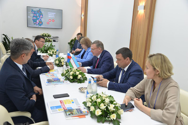 На стенде коллективной экспозиции Омской области состоялись деловые встречи с руководством и представителями органов власти Узбекистана, республиканской Торгово-промышленной палаты, отраслевых ассоциаций, омских и узбекских компаний. В рамках визита Губернатором Александром Бурковым и хокимом Джизакской области Узбекистана Эргашем Салиевым было подписано межправительственное соглашение о сотрудничестве. Дорожная карта по развитию взаимоотношений включает в том числе и реализацию совместных программ и проектов в области высшего образования. В частности, будет прорабатываться вопрос об открытии в Узбекистане представительства Омского государственного технического университета. Это позволит наладить здесь подготовку высококвалифицированных специалистов для различных отраслей экономики.