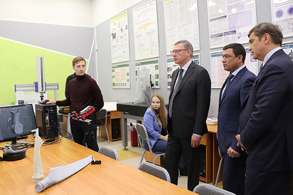 В техническом университете состоялось очередное заседание наблюдательного совета. Перед его началом Губернатор Омской области Александр Бурков, министр промышленности, связи, цифрового и научно-технического развития Омской области Андрей Посаженников и заместитель генерального директора Государственной корпорации «Ростех» Дмитрий Леликов посетили ресурсные центры и инновационные лаборатории вуза. По заказу омских предприятий, входящих в состав холдинга, сотрудники политеха в настоящее время выполняют научно-исследовательские работы.