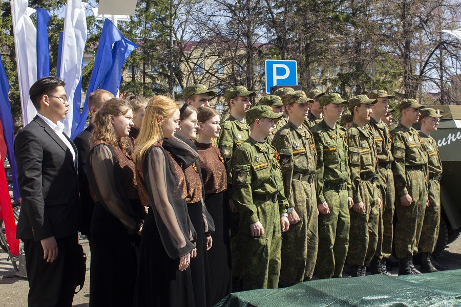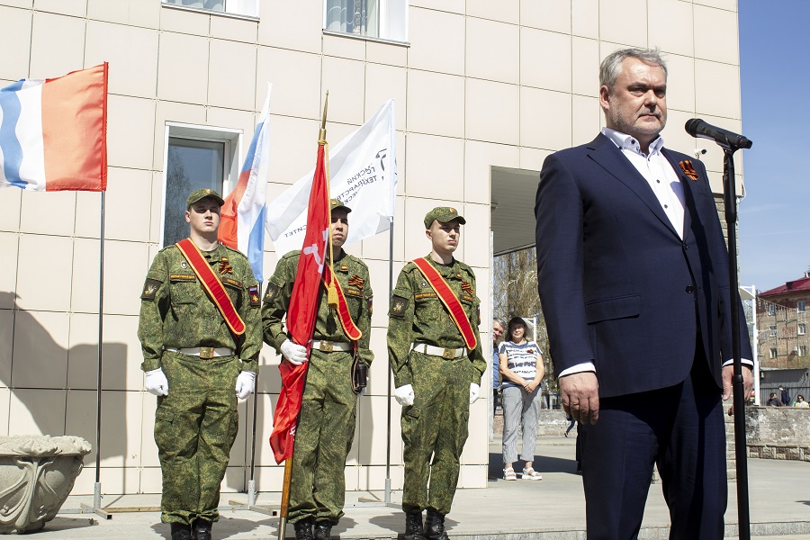 На прошлой неделе у главного корпуса ОмГТУ прошла акция «Эстафета памяти», в рамках которой обучающиеся СибГУФК торжественно передали копию Знамени Победы Омскому политеху. В церемонии приняли участие студенты и офицеры военного учебного центра, руководство вуза, а также ветеран боевых действий, член омского Боевого братства Анатолий Полежаев. Он отметил важность события и его значимость для страны и молодого поколения.