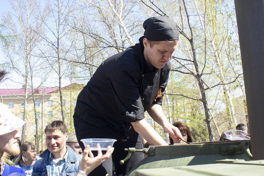 Присутствующие не только оценили мощь всеми известной техники, но и смогли сесть за руль ретроавто. Среди моделей оказались: полуторка ГАЗ-АА, бронетранспортер БТР-40, бронеавтомобиль БА-64 и многие другие. Участники также отведали солдатскую кашу, проявили себя в сборке и разборке автоматов. Сопровождали праздник любимые песни военных лет. Продолжением акции стал праздничный концерт, собравший свыше 300 гостей в актовом зале университета, на сцене выступили творческие коллективы вуза.