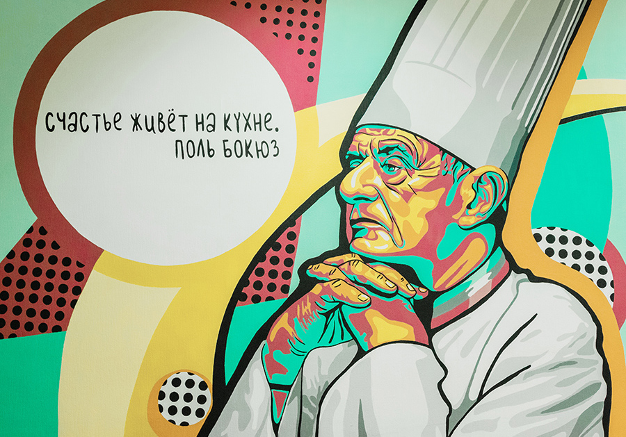 На стене лаборатории индустрии питания и пищевой биотехнологии в 6 корпусе Омского государственного технического университета нашло место новое граффити, созданием которого занималась студентка кафедры «Дизайн» Мария Тамилина. Художница сделала роспись стены в рамках своей дипломной работы. На изображении, выполненном в стиле «поп-арт», – французский шеф-повар Поль Бокюз.