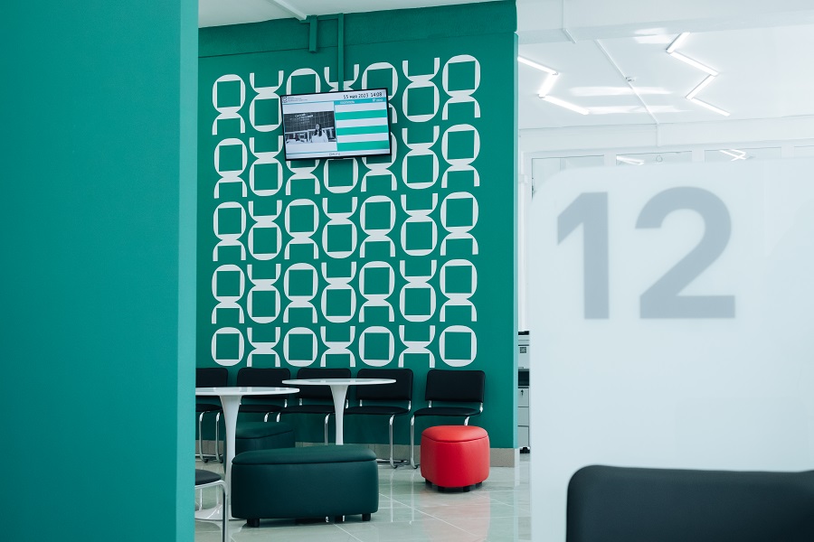 Приемная комиссия теперь будет функционировать в режиме «единого окна». На стойке регистрации необходимо получить талон в нужное окно, помогут с этим администраторы. Отследить свою очередь затем можно на электронных экранах. Для комфортного ожидания для гостей предусмотрена мягкая зона.