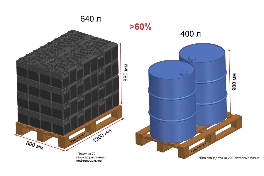Денис Давыдович, научный сотрудник научно-исследовательской лаборатории «Парогазовые смеси в конструкциях ракет-носителей» ОмГТУ: «Мы предложили конструкцию канистр объемом по 5, 10 и 20 литров, которые группируются в блоки за счет конструктивных элементов типа «шип-паз». Если сравнить размещение наших емкостей на европоддоне с размещением традиционных 200-литровых бочек, то при тех же габаритах в них можно разметить 640 литров нефтепродуктов по сравнению с 400 литрами всего в 2-х бочках». |