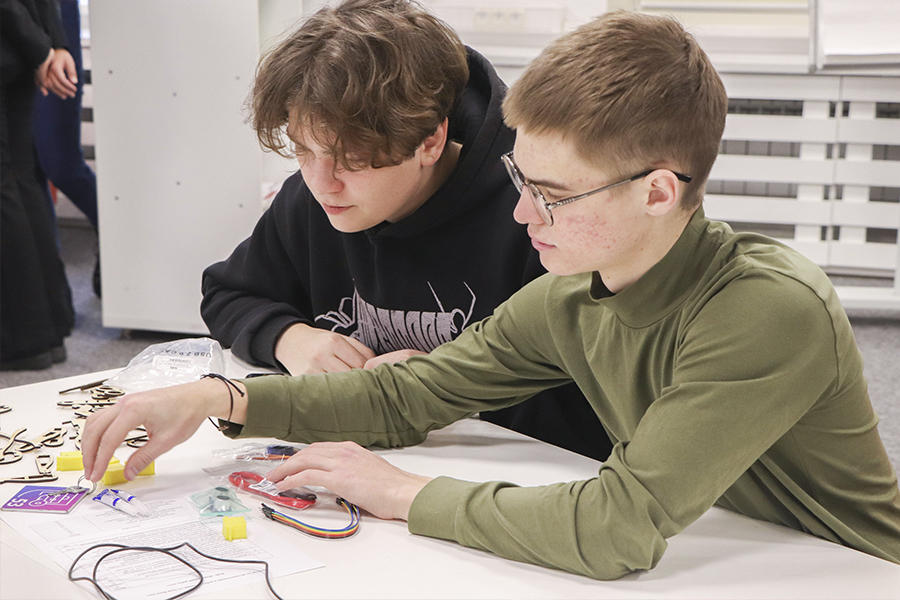 Участникам необходимо было не только собрать роботов из предложенных деталей, но и написать программу, которая позволяет коту поворачивать голову в разные стороны. Дополнительные баллы начислялись за творческое задание – украшение электронного питомца новогодней атрибутикой. Условиями конкурса также были предусмотрены штрафы за поломку определенных деталей конструкции.
