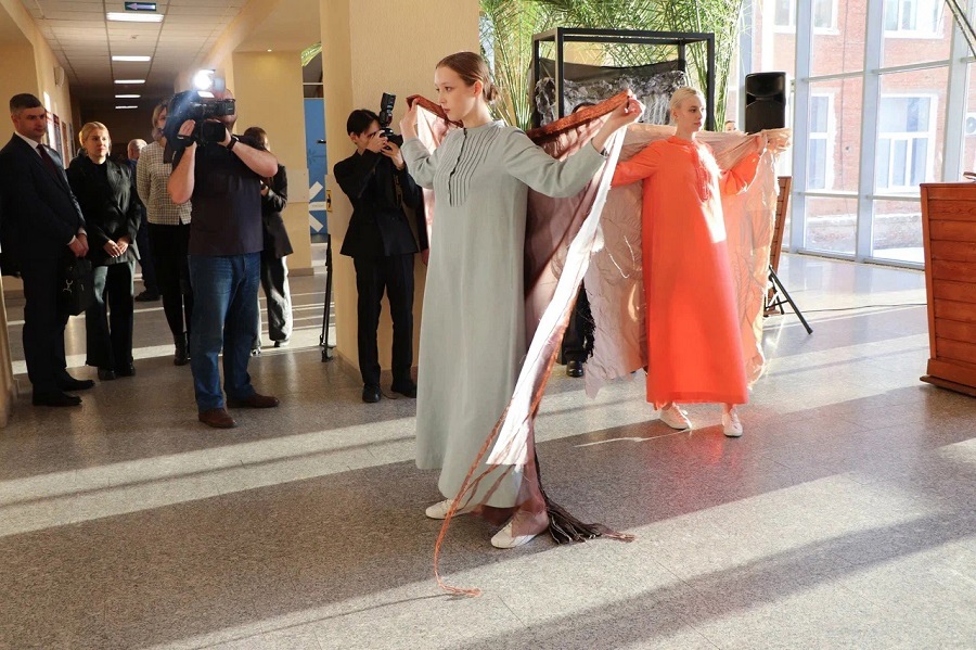 Гости познакомились с современной инфраструктурой политеха. В холле главного корпуса для них был подготовлен перформанс – показ авторских платков, выполненных в рамках арт-проекта «Первые» международного фестиваля дизайна и искусств «Сибирская этника».