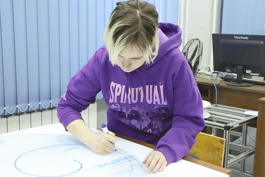 Они продумали дизайн декораций и воплотили свои идеи в жизнь: вырезали фигуры по трафаретам, прикрепили к заготовкам гибкий неон и светодиоды, собрали из подручных материалов гирлянду, которая теперь проложена по периметру клумб, и запрограммировали ее свечение. Преобразилась не только площадь перед главным корпусом, но и само здание: окна украшены светящимися фигурами, фасад и столбы у входа – новогодними снежинками и серпантином гирлянд.