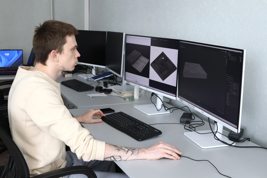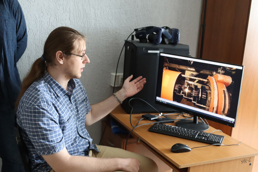 Первой точкой стала лаборатория виртуальной и дополненной реальности от кафедры «Математические методы и информационные технологии в экономике», где студенты представили свою игру-симулятор в постапокалиптическом стиле с применением VR-технологий. Также познакомились гости с разработками для различных предприятий в области 3D-проектирования – сотрудники НОРЦ «Технологии, оборудование, материалы» рассказали об интересных проектах вуза: экомебели, светящейся плитке для тротуаров, моделях челюсти и пальцев, изготовленных путем 3D-печати.