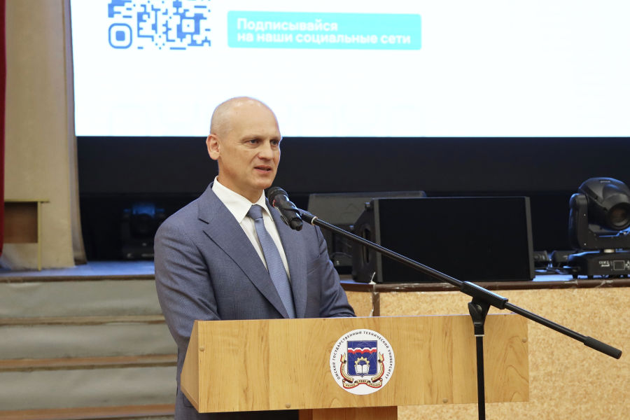 Началась встреча с приветственных слов – и. о. ректора познакомился с будущими студентами и рассказал, что представляет собой Омский политех, озвучил перечень причин, по которым нужно поступить именно сюда. В их числе – сотрудничество вуза с крупными предприятиями, подготовка по приоритетным направлениям, возможность обучения, прохождения практики и трудоустройства в родном регионе, наличие военного учебного центра и другие.