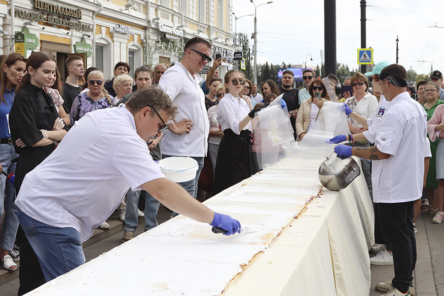 Кусочек гигантского пирога омичи смогли получить за символическую сумму в размере 50 рублей – собранные деньги будут отправлены на благотворительность в детские дома региона. Кроме этого, кафедра провела для горожан мастер-классы по оформлению пряничных изделий и приготовлению вареников с ягодами.