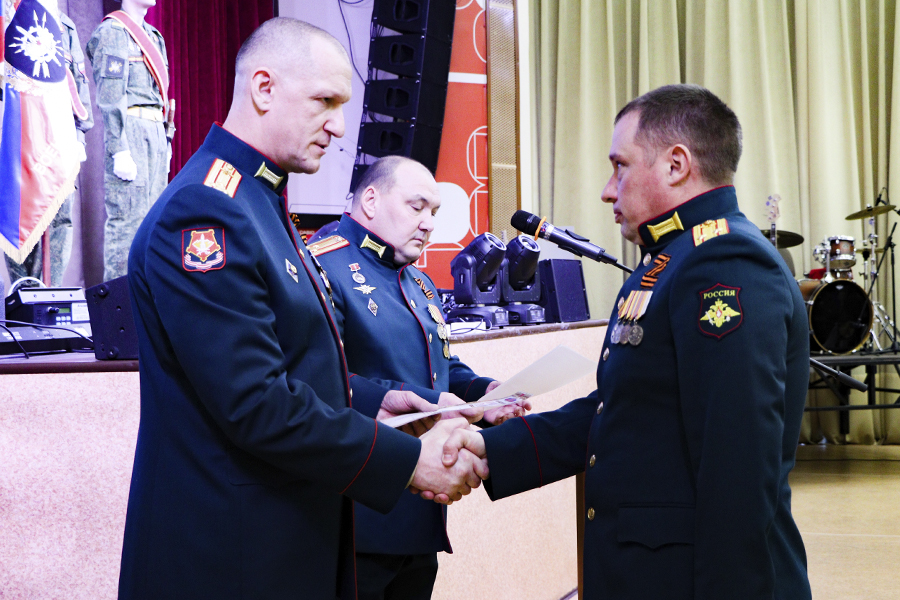 Затем выступил начальник военного учебного центра Константин Грымзин. Он рассказал о значимости праздника, отметил почетность военных профессий и поздравил участников с Днем и Годом защитника Отечества. После чего за разумную инициативу, а также усердие и отличие, проявленные при обучении и воспитании студентов, почетными грамотами были награждены сотрудники подразделения – Валерий Мунин, Иван Кардашев, Александр Анопка, Гарри Аппинг, Владимир Баранов и Николай Роздымаха.