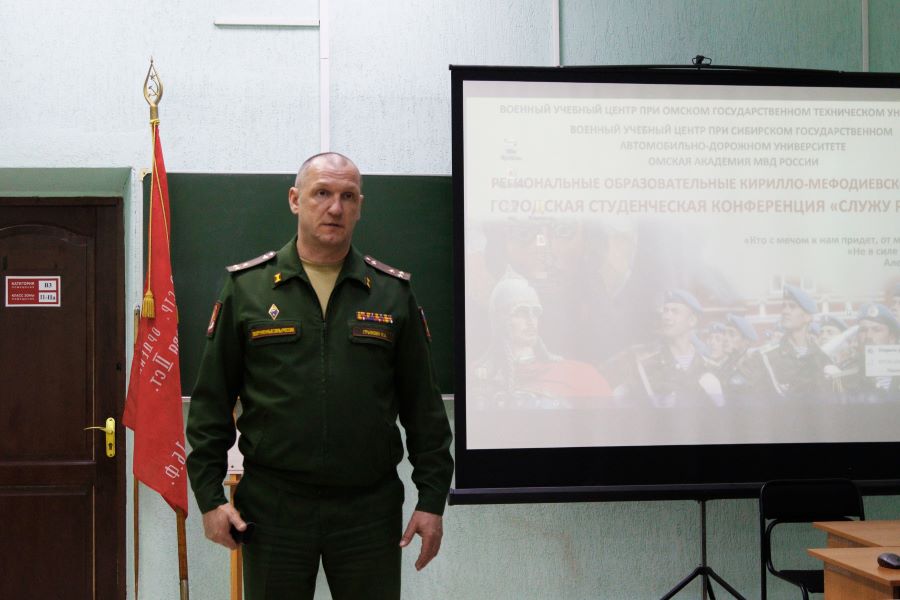 Также в рамках Региональных образовательных Кирилло-Мефодиевских чтений на базе военного учебного центра ОмГТУ состоялась городская воинская студенческая конференция «Служу России». Событие проводится традиционно с 2012 года и приурочено ко Дню воинской славы России. В нем приняли участие преподаватели и студенты военных учебных центров ОмГТУ и СибАДИ, курсанты Омской академии МВД России. Рассматривались такие актуальные вопросы, как связь времен, Год защитника Отечества, 80-летие Победы, а также исторические предпосылки взаимодействия органов внутренних дел с Русской православной церковью.