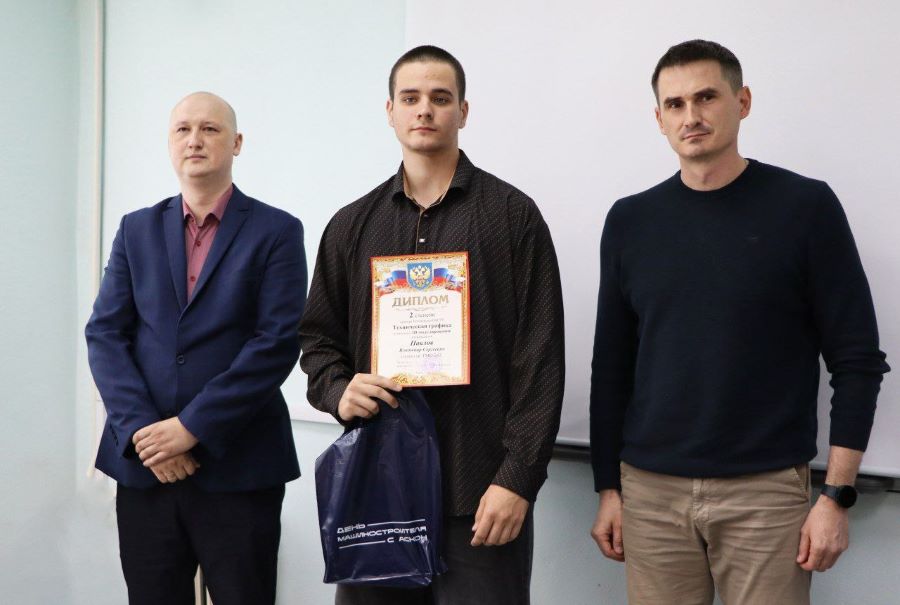 Свои дипломы получили студенты, принявшие участие в олимпиадах по начертательной геометрии, инженерной графике и 3D-моделированию, вручили представитель фирмы «Аскон» Дмитрий Шагов, начальник управления научной деятельностью Евгений Пономарев, а также доцент кафедры «Инженерная геометрия и САПР» Юрий Рогоза. По результатам олимпиад были выявлены победители и призеры: