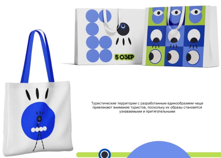 Таким образом, каждый элемент брендбука – от формы до цвета – работает на идею восприятия комплекса «Пять озер» как чего-то живого, чувствующего, приглашающего. Туристический объект здесь представлен не просто как географическая точка, а как самостоятельный герой, который «смотрит» на туриста, вступает с ним в диалог, зовет адаптироваться к его тишине, истории, природе.