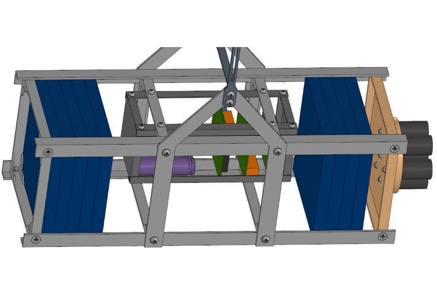 Баллистический стенд состоит из нескольких ключевых компонентов: основание конструкции, опорная система, измерительный элемент – ось с подвесом для крепления макета CubeSat 3U, угломерная шкала. Дополнительно стенд оснащен измерительным комплексом MiniSat для контроля динамических параметров и температурных режимов. Испытательный комплекс будет решать несколько ключевых задач: