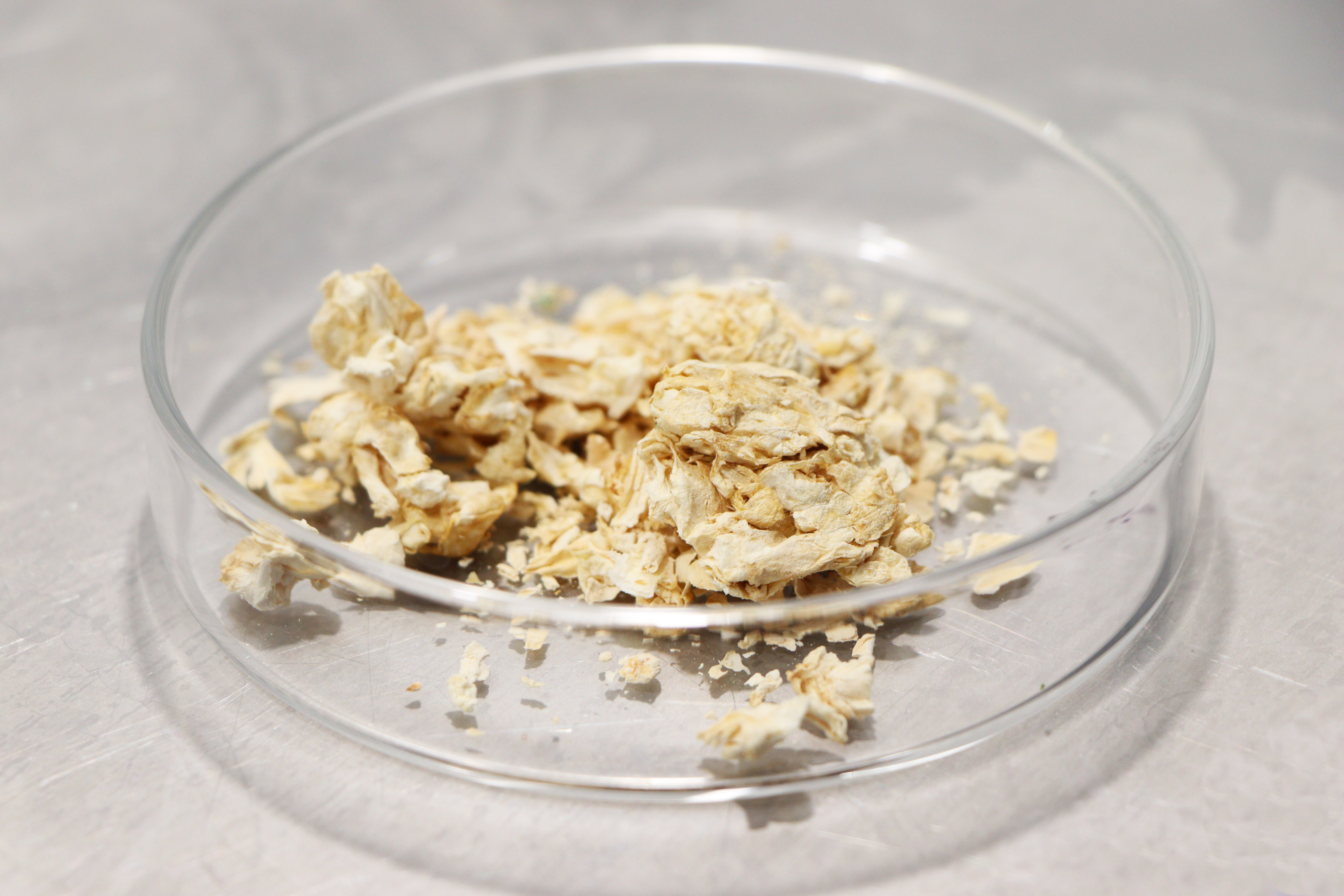 Для получения белковой биомассы из мицелия политехники подготавливают посевной материал штамма гриба, затем культивируют его на питательной среде. Далее биомасса мицелия отделяется с помощью фильтрации и сушится. Как итог – получается белковая биомасса с высоким содержанием протеина и физиологически активных веществ. Для ученых качество белка – это не просто процентное содержание протеина, а совокупность характеристик: полнота аминокислотного профиля, усвояемость, безопасность, отсутствие аллергенов и функциональные свойства.