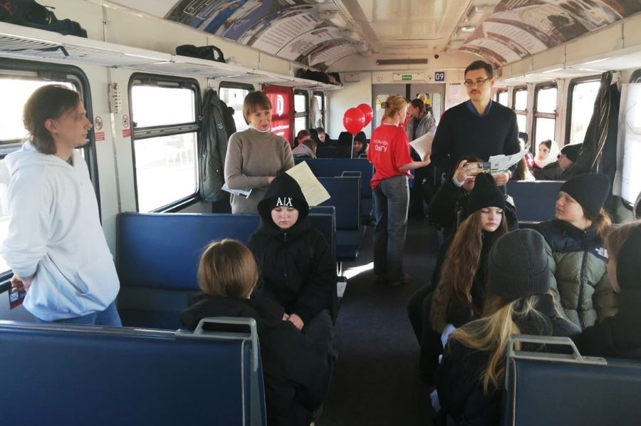 Студенты и сотрудники ОмГТУ приняли участие в ежегодной профориентационной акции «Электропоезд «Знание» – совместном проекте АО «Омск-пригород» и Омского областного студенческого отряда. На протяжении недели политехники знакомили школьников с факультетами и институтами технического университета, а также рассказывали о мероприятиях, которые в скором времени пройдут в вузе.
