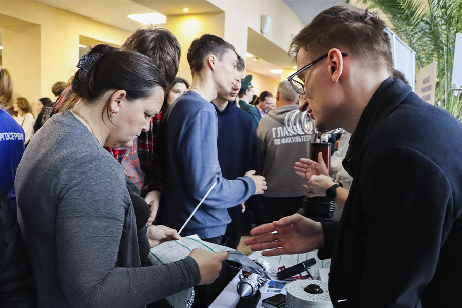Директор центра профориентации и приема абитуриентов Александр Охотников и помощник проректора по образовательной деятельности Оксана Панина предоставили детальную информацию по данным приемной кампании 2025 года о процедуре и правилах поступления, особенностях подачи документов и квотах для различных категорий абитуриентов. Особый интерес вызвала информация о военном учебном центре. Его начальник Константин Грымзин и старший преподаватель Александр Анопка презентовали направления подготовки, доступные студентам разных специальностей, и объяснили, кто может получить военную специальность параллельно с гражданским образованием.