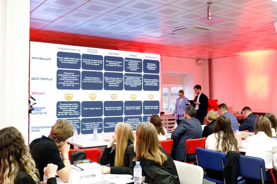 Финальный этап представлял собой интенсивную очную работу. В течение трех часов команды дорабатывали свои стратегии развития молодежных продуктов Альфа-Банка с учетом новых условий: сокращения бюджета на 25% и построения карты клиентского пути. После подготовки студенты представили решения экспертному жюри, которое высоко оценило проработанность и креативность проектов и пожелали участникам дальнейшего профессионального развития.