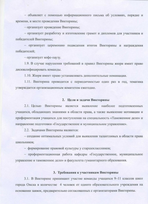 Кафедра «Государственное, муниципальное управление и таможенное дело» приглашает принять участие учащихся 9-11 классов школ г. Омска в викторине