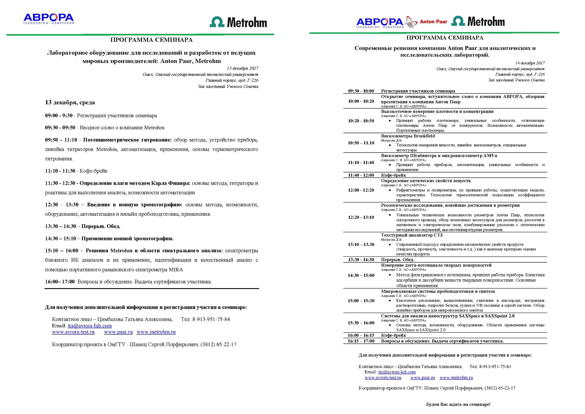 Программа семинаров по лабораторному оборудованию Metrohm, Anton Paar