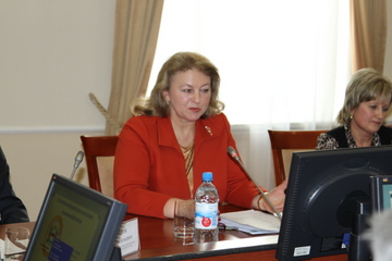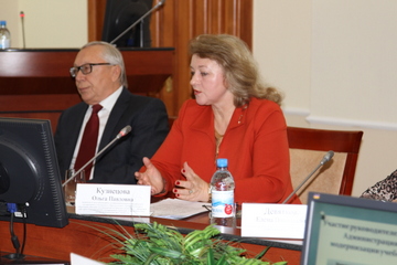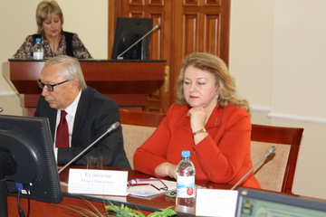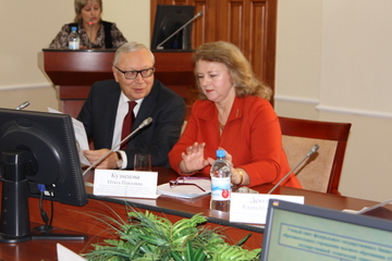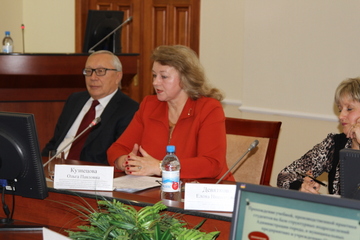 С докладом о работе базовой кафедры «Муниципальное управление в Администрации г. Омска» выступила Проректор по внеучебной работе и социальным вопросам федерального государственного бюджетного образовательного учреждения высшего образования «Омский государственный технический университет», заведующий кафедрой «Государственное, муниципальное управление и таможенное дело», доктор экономических наук, профессор Кузнецова Ольга Павловна