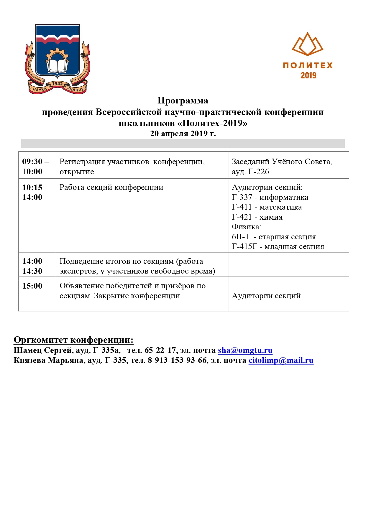 Заключительный этап Всероссийской научно-практической конференции школьников "ПОЛИТЕХ" 2019