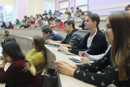Студенты с интересом слушали лекцию, активно задавали вопросы, дискутировали на различные темы: нужен ли первоначальный капитал для развития бизнеса, эффективны ли программы государственной поддержки малого предпринимательства и др.