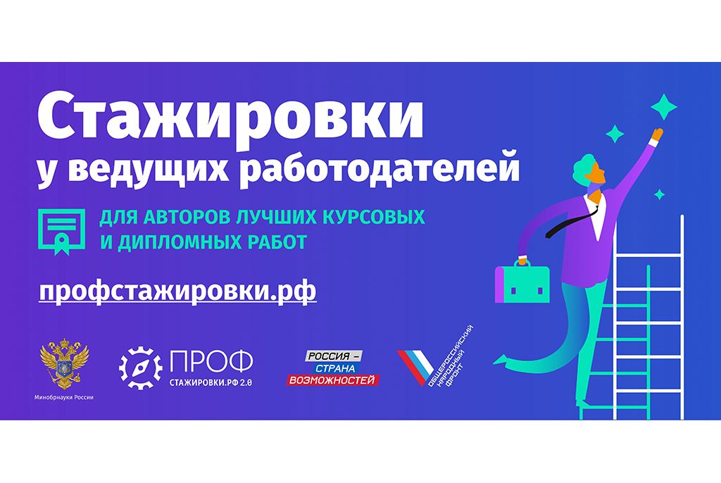 «Профстажировки 2.0» – совместный проект платформы «Россия – страна возможностей» и Общероссийского народного фронта.Это новый механизм взаимодействия студента образовательной организации и работодателя, задействующий студенческие работы и стажировки в качестве социального лифта для молодежи.