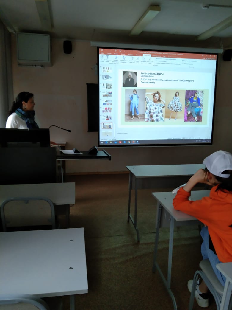 Также им представили презентацию кафедры «Дизайн костюма» и подробно рассказали о новой направленности «Дизайн в индустрии моды»; рассказали о том широком диапазоне практических навыков, которые студенты смогут получить в период обучения и применить в дальнейшем в различных областях дизайна (графическом дизайне, средовом дизайне, в дизайне интерьера); познакомили с информацией о трудоустройстве выпускников, с широким спектром должностей, которые занимают выпускники кафедры; обозначили круг дисциплин, преподаваемых на кафедре и уточнили, что в перечень спецдисциплин также входят: «Компьютерная и проектная графика», «Информационные технологии в дизайне», «Скетчинг». Рассказали о том, что в период обучения студенты кафедры осваивают различные современные компьютерные программы, в том числе CLO 3D. Также рассказали об участии студентов в Международных, Всероссийских конкурсах, фестивалях и выставках, проводимых в нашей стране и не только.