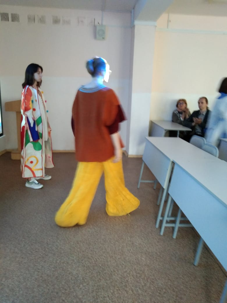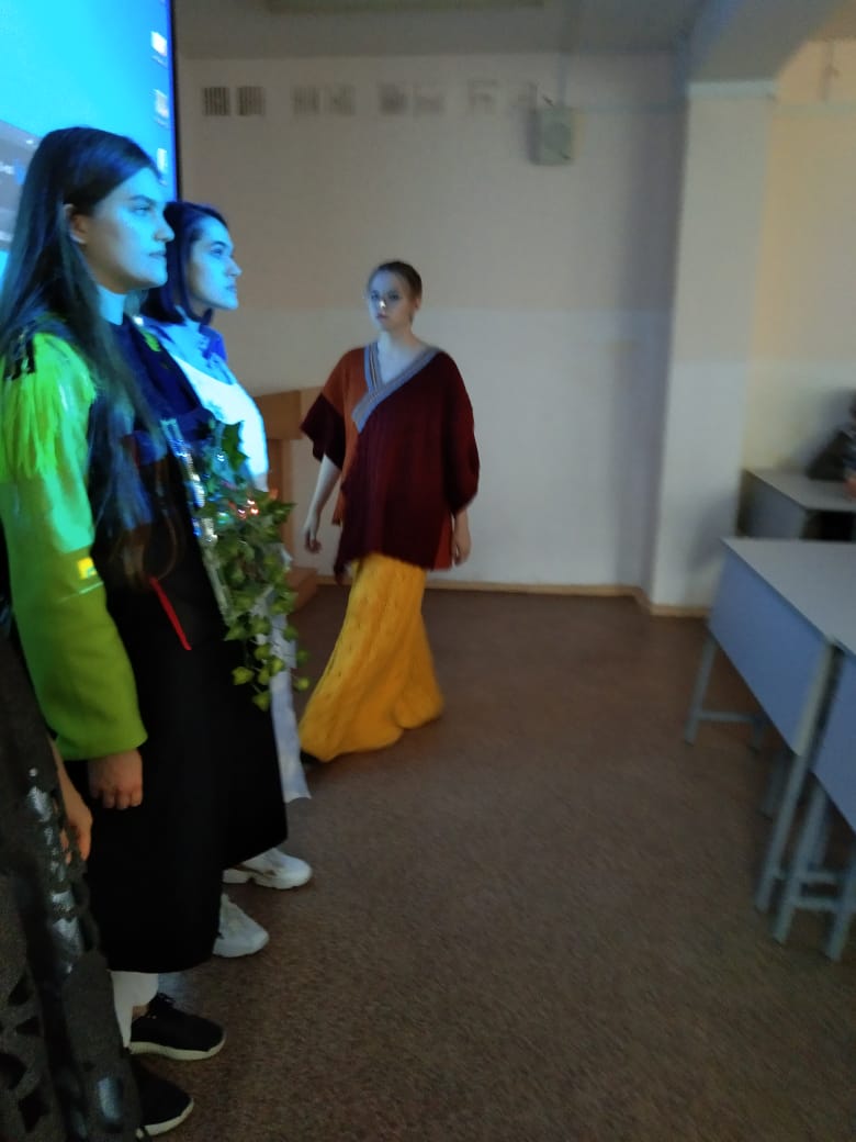 Учащимся было предложено дефиле – показ авторских моделей и единичных изделий (платок) студентов 1-4 курсов.