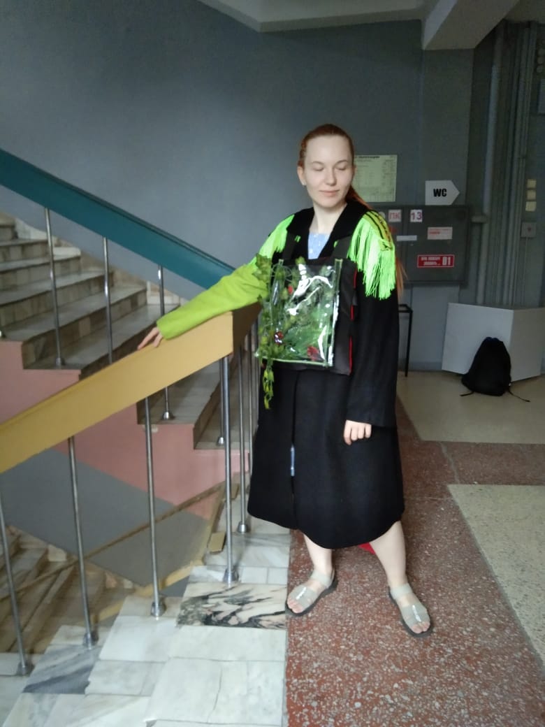 В заключение встречи вниманию учащихся была представлена выставка костюмов молодых экодизайнеров и экспозиция работ Омского художника Виталия Латышенко, а также выставка творческих работ Татьяны Моисеевой. Состоялась фотосессия на память в авторских моделях.