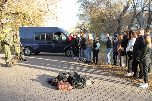 В середине октября запланировано несколько посещений таможни студентами с целью демонстрации им тяжелых трудовых будней самых «четвероногих сотрудников» Омской таможни. Студенты имели честь познакомиться, тесно пообщаться с этими сотрудниками и убедиться в сложности и опасности их работы. Сотрудники Кира и Хантер, а также их инспекторы-кинологи кинологического отдела Омской таможни провели показательную демонстрацию своих умений по поиску веществ, запрещенных к провозу через таможенную границу. Кинологи рассказали студентам об особенностях работы со служебными собаками, методах их дрессировки, а также ответили на многочисленные вопросы.