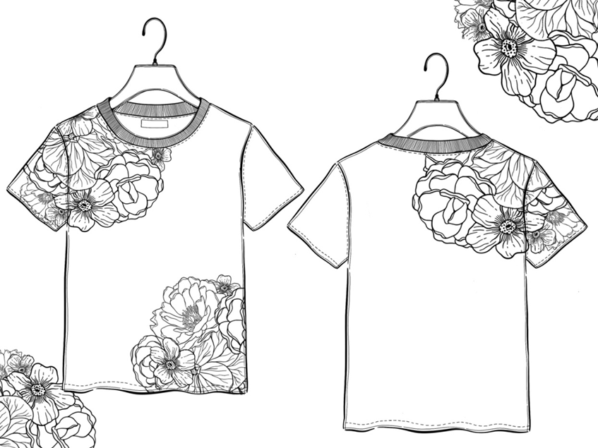 – эскиз 2, 3, 4 –эскизы футболок с композиционными и цветовыми вариантами разработанного мотива: одна футболка на одном листе формата А4 (единый для всех шаблон представлен в Приложении 2). Основные задачи:
