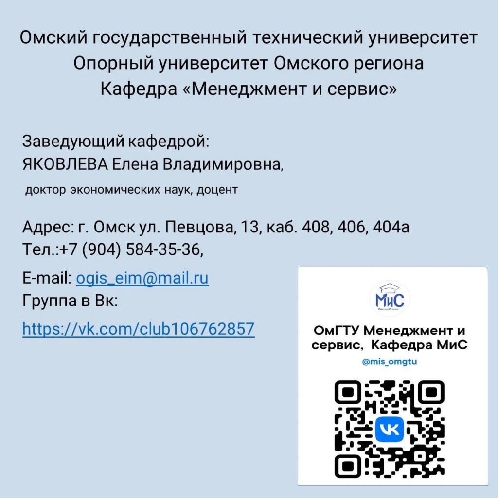 День открытых дверей кафедры "Менеджмент и сервис" состоится 26 ноября, 12.00.