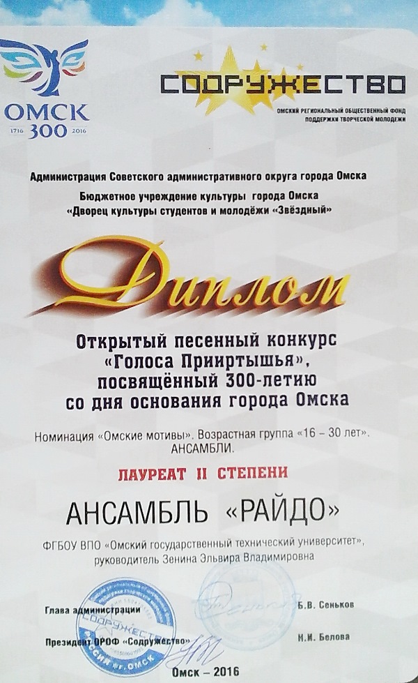 На сегодняшнем гала-концерте 15 самым лучшим творческим исполнителям и коллективам ОмГТУ были вручены дипломы и призы, среди которых 4 сертификата на запись фонограмм.
