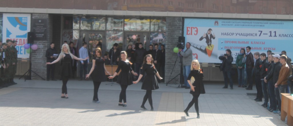 Прекрасным украшением мероприятия явились великолепно исполненные студентками НХИ, ФГО танцевальные композиции, посвящённые Дню Победы. Практически во всех мероприятиях принимает участие этот самобытный танцевальный коллектив ( руководитель- студентка 3 курса НХИ Спожайкина Евгения).