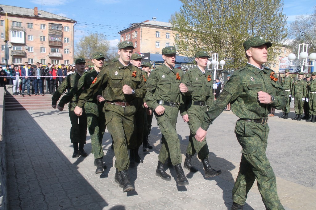 Затем, в лучах яркого весеннего солнца, чеканя строевой шаг и держа равнение, на площадь вступили отделения, которые маршировали, пели походные песни, выполняли строевые команды.