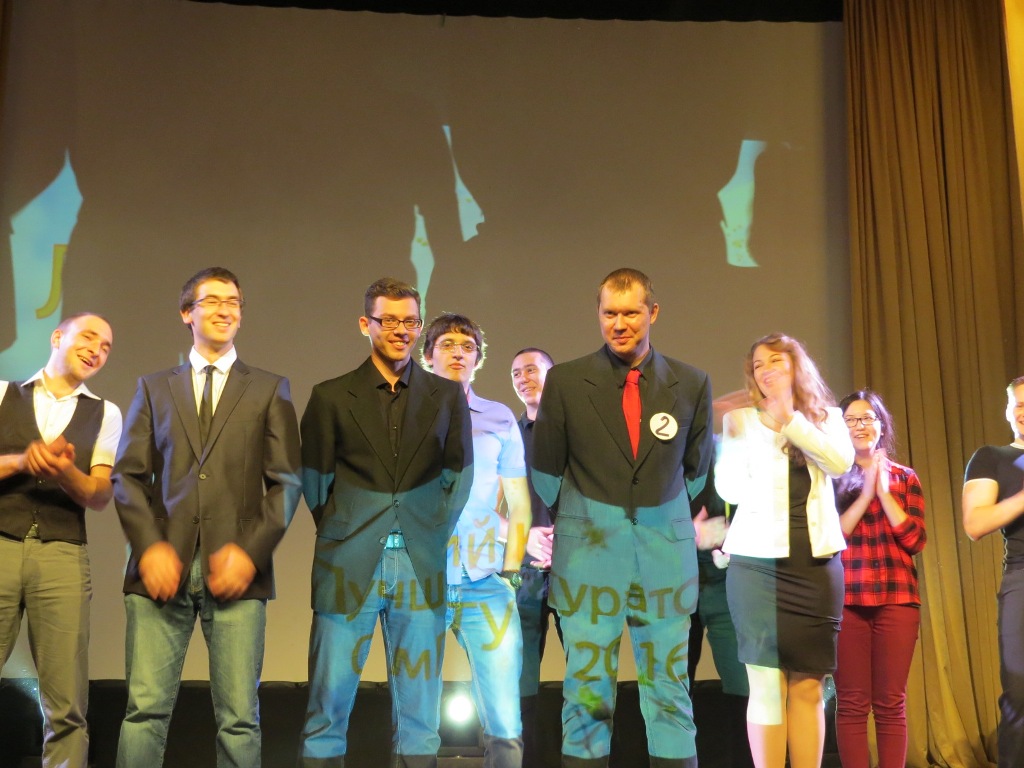 Кураторы вместе со своими группами, начиная с первого выхода на сцену, отлично справились с заданиями конкурса: представили визитку, письменно ответили на студенческие вопросы, касающиеся истории нашего университета и непосредственно работы куратора, показали домашнее задание.
