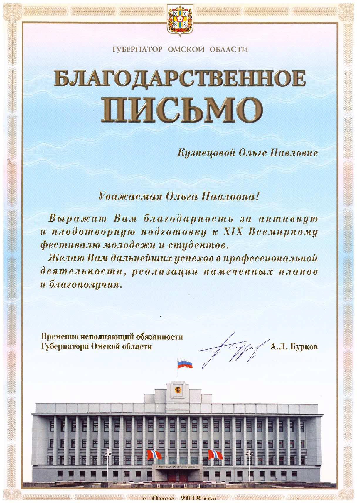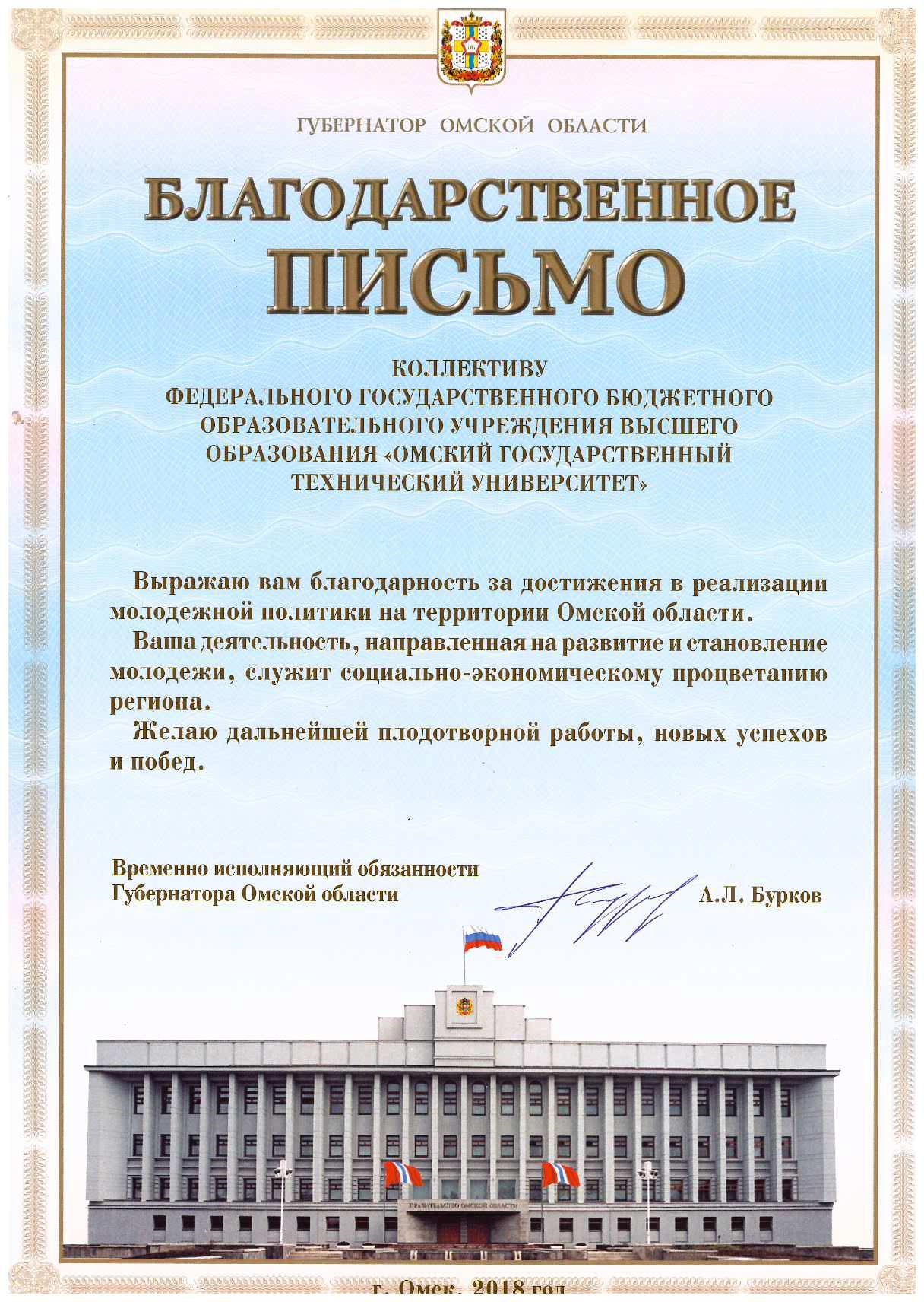 В завершении мероприятия Министр по делам молодежи, физической культуры и спорта Омской области Дмитрий Крикорьянц отметил благодарственными письмами за активное сотрудничество в организации и проведении молодежных мероприятий и ОмГТУ в целом, и лично проректора ОмГТУ Ольгу Павловну Кузнецову.