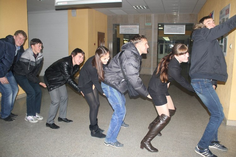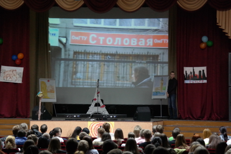 Вначале каждая группа представила свое домашнее задание: наши первокурсники должны были отгадать зашифрованное на картинке место в ОмГТУ и сделать там оригинальное фото своей группы.