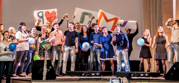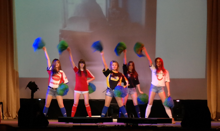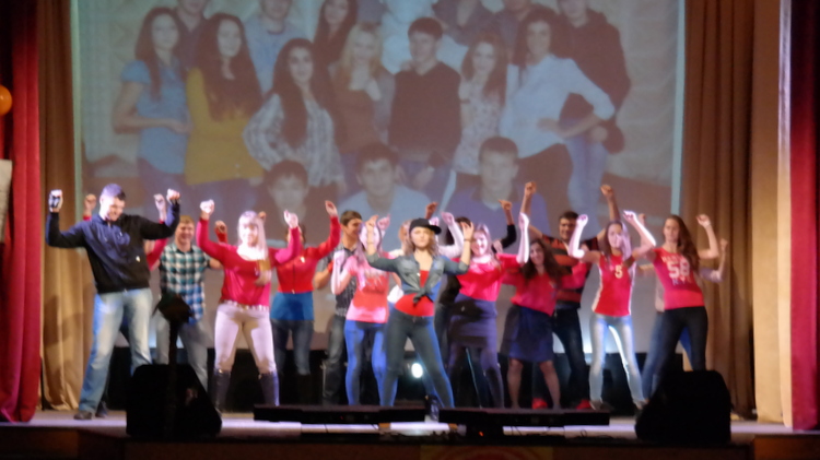 Затем ребята представили свои визитки. В переполненном актовом зале с восторгом аплодировали зажигательным танцам, песням и видеороликам от будущих государственных управленцев и специалистов по таможенному делу.