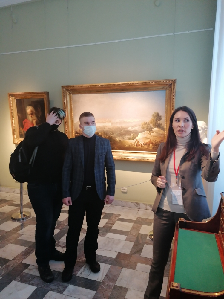 В завершение темы "Искусство. Живопись" (Arts. Painting) студентам было предложено на практике реализовать накопленный потенциал устной речи на английском языке в условиях реальной музейной выставки. Студенты также имели возможность "прокачать" навыки синхронного перевода с русского языка на английский, моделируя реальную коммуникативную ситуацию. Ребята работали в парах и в ходе индивидуальной экскурсии побывали в ролях "иностранцев" и переводчиков, используя технику «шушутаж» (*chuchotage с фр. - «нашептывание»). Специалист в области шушутажа должен обладать высоким уровнем профессионализма, чтобы одновременно тихо и разборчиво донести до своих слушателей информацию. Наши студенты не подвели, и у сотрудников музея сложилось впечатление, что у них в гостях действительно побывали иностранцы и переводчики.Кафедра "Иностранные языки" выражает признательность музею им. Врубеля за содействие в организации мероприятия.