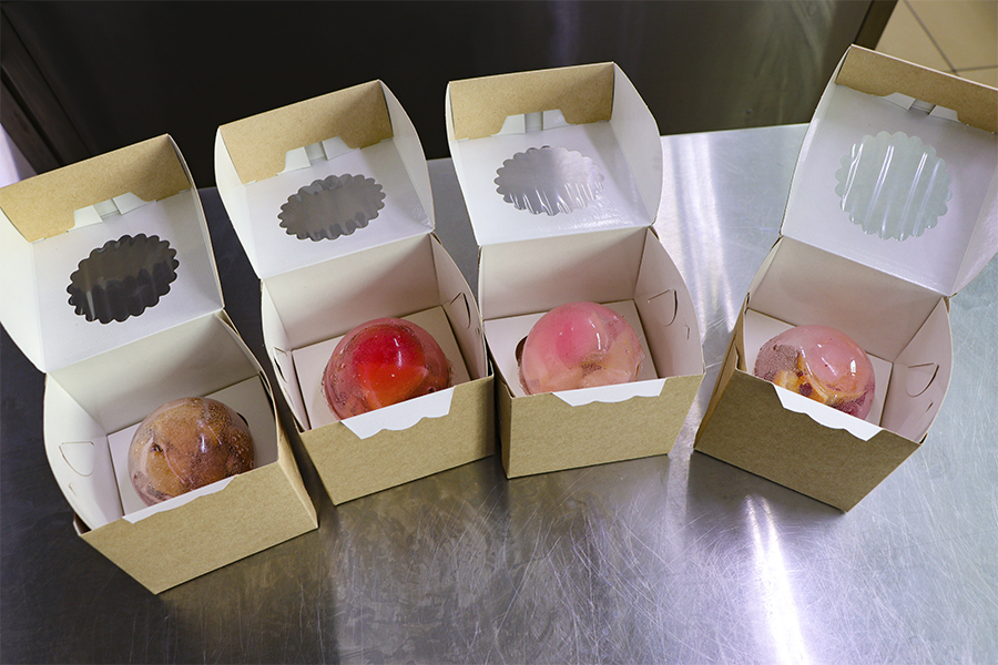 Производство делится на несколько этапов. Самый длительный процесс – сублимация фруктов и ягод с помощью специализированного оборудования. В отличие от обычной сушки, эта технология позволяет сохранить все витамины и полезные свойства продуктов, несмотря на произведенную обработку. После этого начинается работа с изомальтом. Сначала он плавится и смешивается с концентрированным клюквенным соком. Получившуюся жидкую массу разливают в силиконовые формы, формируя полусферы – идеальные половинки будущего шара. Внутрь помещают сублимированные фрукты и ягоды, например, малину, клубнику, манго, яблоко и многие другие. Затем остается только соединить две полусферы, и сладкий прозрачный шар с угощением готов. Финальный штрих – проверка на качество и аккуратная упаковка.