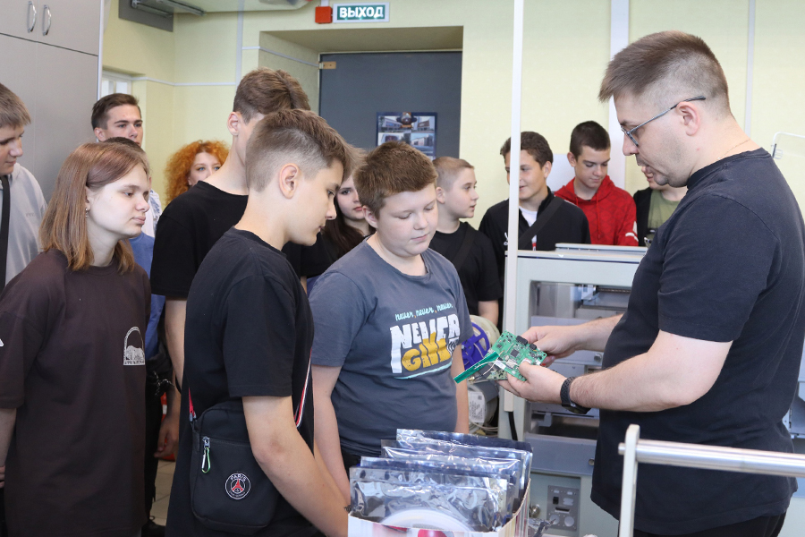 Также сотрудники ОмГТУ провели для учащихся экскурсию по ресурсным и научно-образовательным центрам университета. Ребята посетили дизайн-центр проектирования электронной компонентной базы, Центр подготовки высококвалифицированных инженерных кадров для ПО «Полет» и лабораторию WorldSkills в компетенции «Электромонтаж».